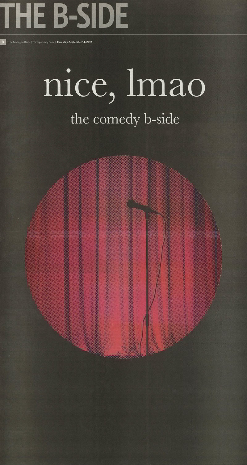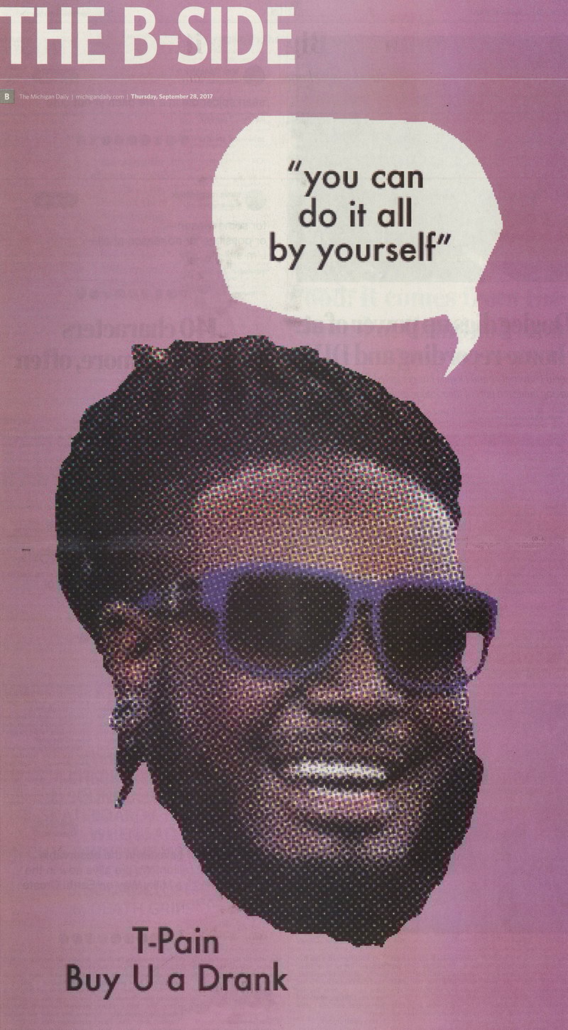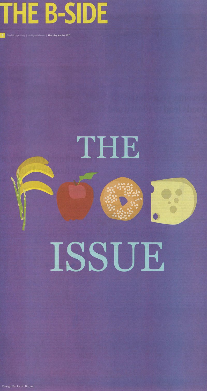 In 2017, I designed covers for The B-Side, the weekly arts and culture section of the University of Michigan’s student newspaper, The Michigan Daily. This experience was one of my first opportunities to work in a fast-paced, deadline-driven environment. I received prompts and created on tight timelines. I would then get to see my work printed and distributed the next morning.